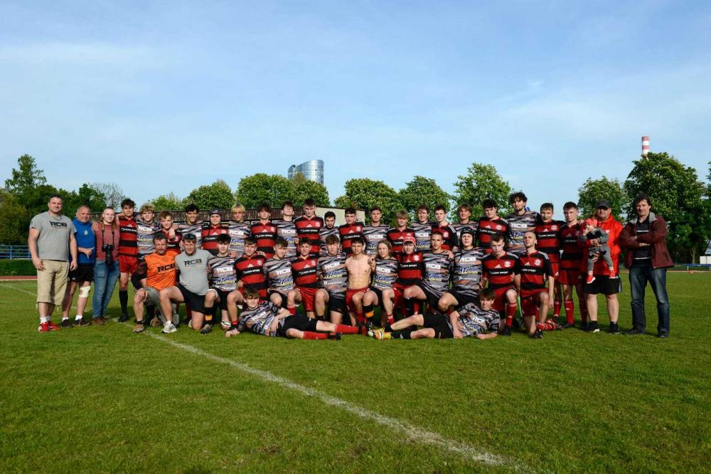 V neděli 28. dubna jsme vyrazili na utkání s druhým moravským soupeřem, společenstvím Olomouc-Zlín. Po dopoledním tréninku, který byl ve slušném tempu a lehkém obědě, jsme v dobré náladě dorazili do Olomouce, která si nadělila "víkend rugby" a po sobotním turnaji žáků, nedělním turnaji dívek a žen, měl právě zápas juniorů uzavřít víkendový ragbyový program. Opět jsme museli improvizovat se sestavou, protože jsme zase posbírali pár omluvenek, ale nakonec jsme to zvládli. Absolutorium si za putování sestavou vysloužil Janek Svrčina, který začal na křídle, pak se přesunul na rváčka a po zranění Filipa Polocha skončil v první řadě a všude hrál parádně.