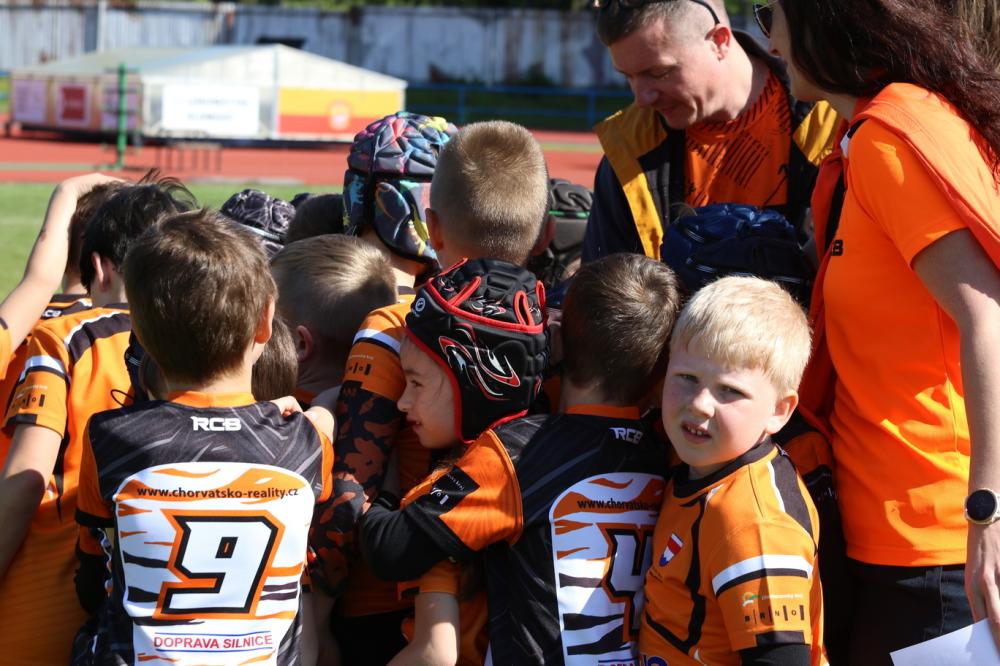 Tentokráte nás přivítalo slunečné počasí a pásmem, což my nevidíme rádi, protože je to o zranění, vytyčené dvě hřiště pro osmičky. Poněvadž se nám podařilo postavit čtyři týmy, tak měla v sobotu premiéru dámská sestava trenérek. Samozřejmě nechyběl ani mužský element, prostě to bylo tak trochu na oko, což znalci šachu znají jako dámský gambit. Ovšem co to udělalo s našimi boys bylo neuvěřitelné! Pánové poslouchali od prvních pokynů rozcvičky, vkleče streče, až po příkazy dam na hřišti. Takže zatímco na trenéra koukají často při pokynu ke skládce jako na vola, vždyť nelegální skládka je přece tréňo za pětikilo, pro dámy by se přetrhli a donesli jim na oltář všechno včetně předních zubů. Holt asi budu muset pořídit paruku a upilovat hlasivky jako v jisté pohádce. Každopádně dámám patří velký dík za celý turnaj!