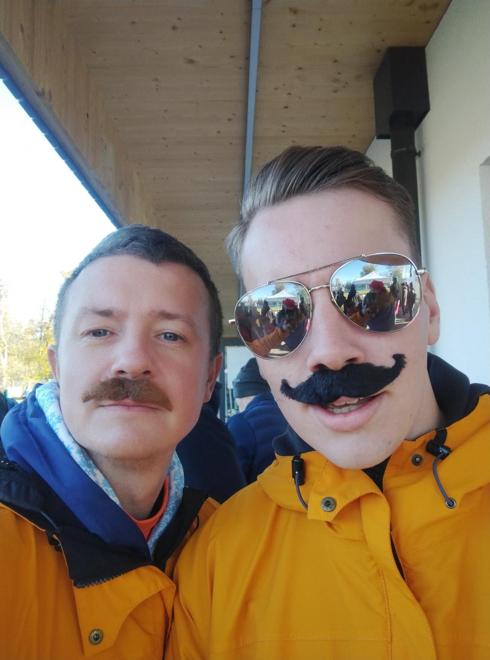 V půl desáté jsme vstoupili do areálu naproti slavnému národnímu fotbalovému stadionu v Prátru. Zázemí prošlo nedávno zdařilou rekonstrukcí a dostavbou, dokonce jsme měli i vlastní šatnu. Obvyklým znakem Movemberu jsou kníry a nejinak tomu bylo v sobotu. Dětem byly namalovány, někteří dospělí se vytasili s vlastní proveniencí a my, co bohužel nemáme moc jak vypěstovat hustou ozdobu, jsme vzali zavděk tím, že Epic sehnal od strejdy, sňatkového podvodníka toho času ve starobním důchodu, solidní nalepovací práskače.