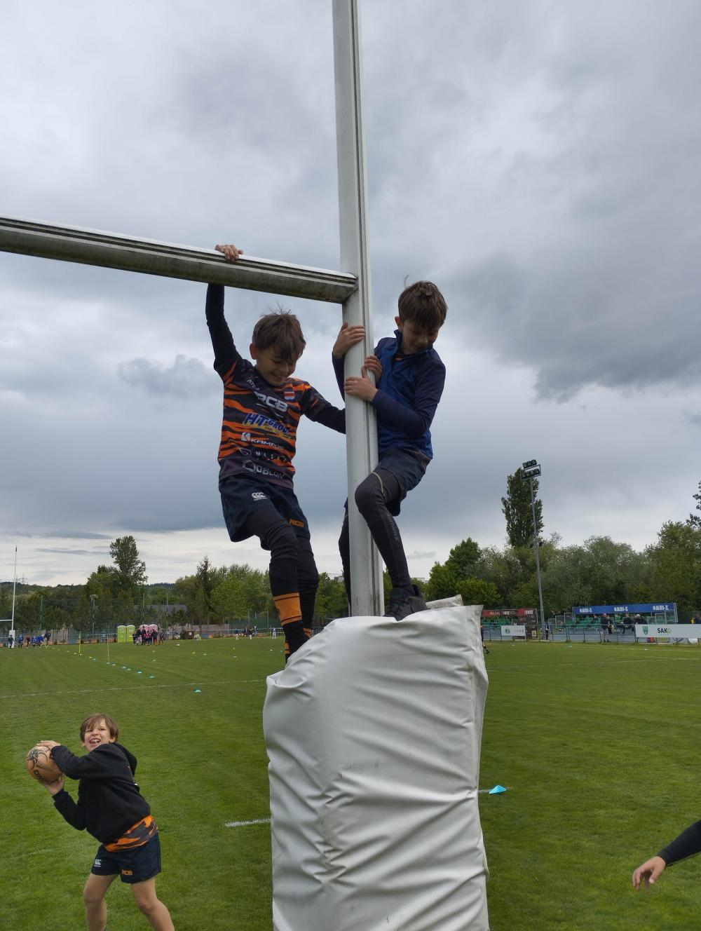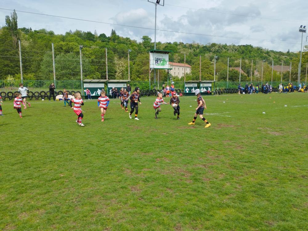 S dětmi jsme zhodnotili turnaj, poděkovali jim za jejich bojovnost, nadšení, soudržnost i férovost, prostě za dodržování všech pěti ragbyových hodnot, a společně jsme se vydali na vyhlášení. Odměny tentokráte dostaly jen první tři týmy. Což je dost motivační pro příští ročníky, jen díky tomu, že tradiční tuna nepořádku z tatranek odpadla, brněnští popeláři nebudou mít co žrát!
