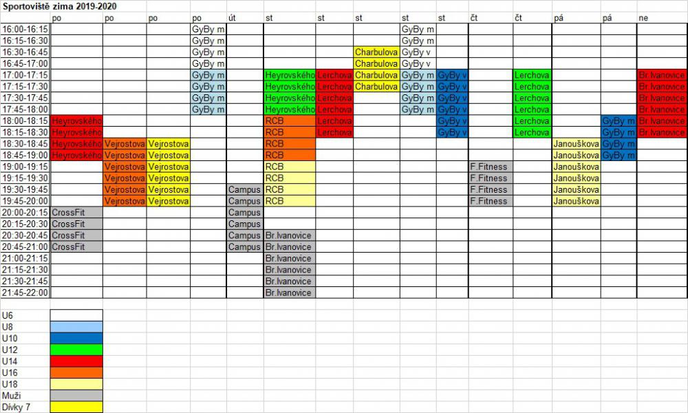 Podrobný rozpis tréninků naleznete v přiložené grafice a hlavně v sekci KALENDÁŘ jednotlivých mužstev. Pro jistotu ještě níže uvádíme detailní rozpis.