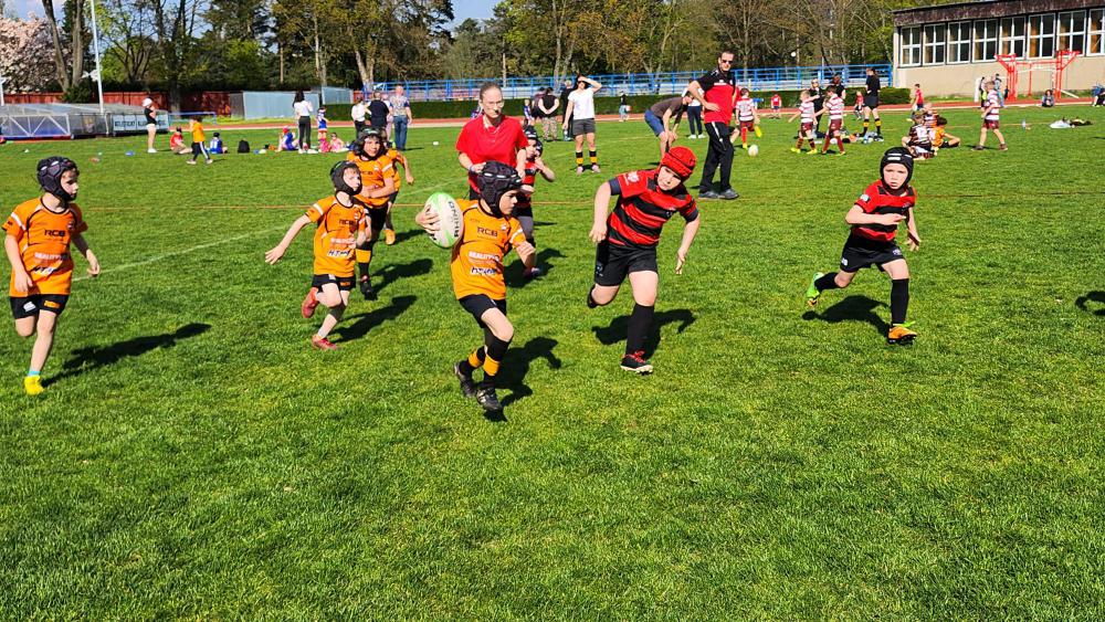 Postavili jsme tři mužstva, dvě do skupiny pop music, tedy basic a jedno do hard and heavy, tady major. Moc jsme netušili co od toho čekat, ale brzy se ukázalo, že vše zůstalo při starém. Oranžový tým kosil jednoho soupeře za druhým a nejinak si vedli kluci z týmu černých (pro případné uklidnění vášní strážců morálky a G vyváženosti, nebo věčných hledačů onoho bodu dodáváme, že se nejednalo o spřátelený tým RCL (Rugby Cuba Libre) Havana, tedy opálených hochů z rozvojových zemí, ale pouze o barvu dresu/ů.) Co dodat k týmu bílých. Byli bílí. Ze začátku. A vyhráli co se dalo. Tak nějak komunitně. Pěkně jsme si zahráli, počasí bylo na naší straně, rodičů přijela spousta.