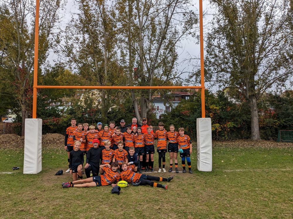 Výkopem v 11.00 začalo utkání, a po prvotním oťukáváním soupeře a zjištění, že hosté v podstatě nedisponují plnohodnotným rojem, jsme rozjeli naši útočnou hru přes křídla a začali pokládat jednu pětku za druhou. Na dnešní zápas se zřejmě špatně vyspal Ozzy, protože konverze, i z vyloženě dokonalých pozic, míjel. Naštěstí to nemělo příliš vliv na vývoj utkání, a tak se posléze na kopech vystřídali Trťa, Riči a Jandas. První půle skončila 32:0 pro nás.