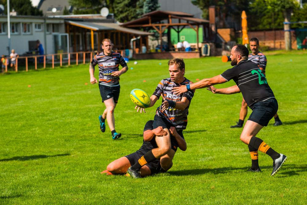 Ale jak už to teď v dnešní době funguje, život ve virtuálním světě sítí nemá nic moc společného s real lajfem! Takže v sobotu nakonec dorazili jen boys z RK Bratislava, kterým tímto děkujeme. Takže turnaj nebyl. Nicméně nedostatek týmů do turnaje nemohl zkušeného a bídou českého rugby zoceleného, hlavního pořadatele Václava Vorla, zaskočit. Hrálo se proto šest krátkých utkání na 7 minut, takže všichni zúčastnění mohli mít dojem že turnaj hrají, což bylo podpořeno i stále novými tvářemi v sestavě soupeře, kterého jsme tak nějak komunitně doplňovali!:-) Takže turnaj byl! Výsledky nejsou důležité, hlavně že výkony šly proti prvnímu utkání nahoru, hra se zlepšuje a všichni z toho mají oprávněně dobrý pocit. A o to na Open jde!;-)