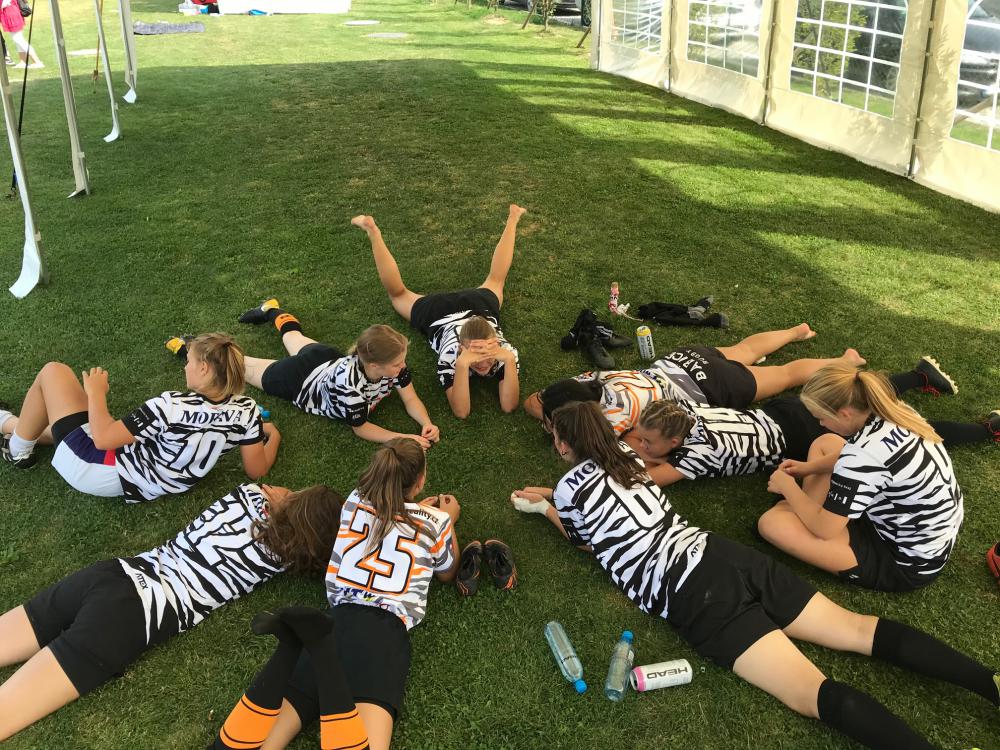 K turnaji se sjelo šest týmů kategorie U17, naše U15 jsme spojili do společenství s Popovicemi. Holky si díky tomu zkusily sedmičkové rugby na celém hřišti a obstály opět se ctí.