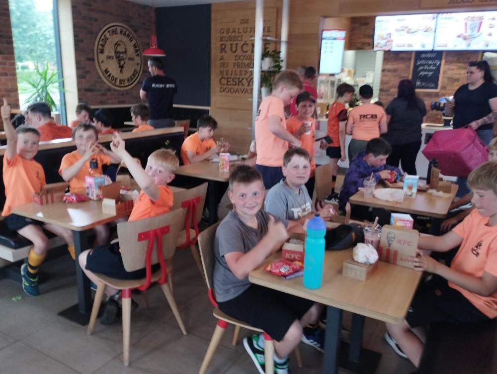 V mezidobí se děti bavily po svém, obzvláště zajímavý pak byl doslova O melouny boj, kdy vynalézaví (a prozíraví) rodiče dali své ratolesti zabalený meloun bez jakéhokoliv kráječe. A teď si dítko poraď! Poradili! Stejně tak ihned po skončení turnaje vlítli na tradiční nafukovací hrad, který po několikerém zásahu dospělých naštěstí přežil i řádění hordy brněnských dítek, z nichž sice většina nosí domů samé jedničky, ale s rodiči v nedohlednu se často mění ve smečku neandrtálců! A KFC samozřejmě nakonec taky proběhlo, takže mise byla řádně splněna. Při odjezdu jsme ještě se smutkem a otázkou "zda-li se ještě někdy uvidíme" v očích zamávali odvážlivcům z řad rodičů, kteří zůstali na místě a v rámci dobrovolného spolku invalidů Open sehráli zápas se stejně postiženými ze zbytku Moravy. Nakonec víceméně přežili všichni, sláva vítězům i přeraženým!