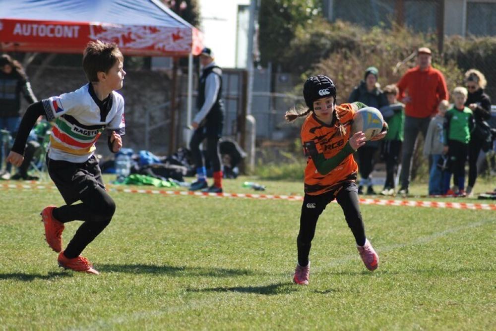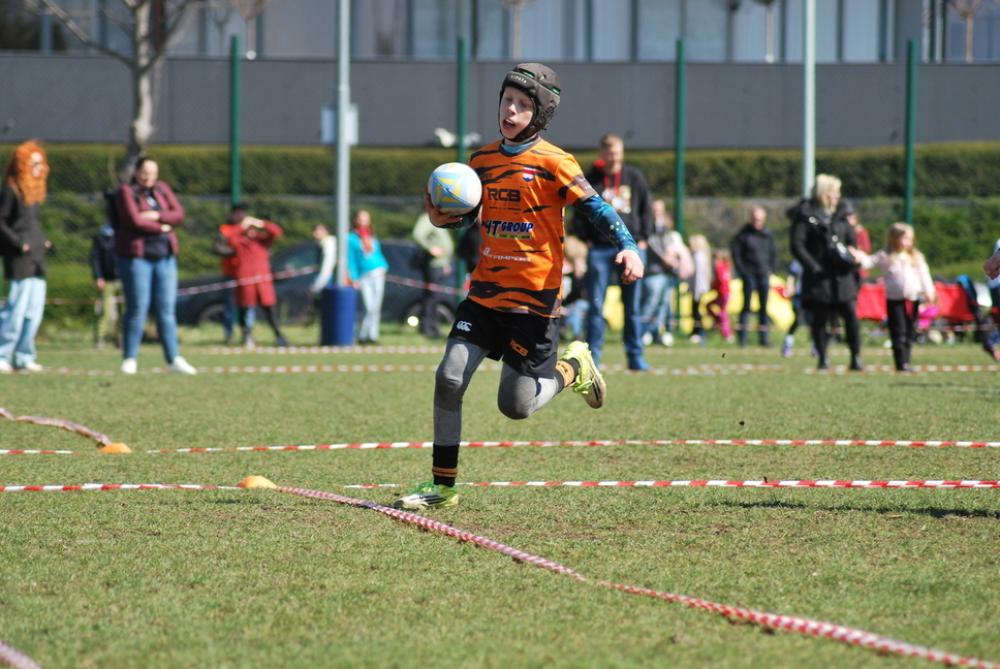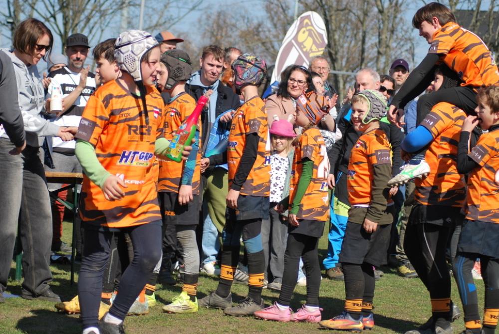 Úderem desáté hodiny se rozehrál největší mládežnický turnaj v rugby na našem území. Na pěti hřištích se střídali soupeři z celé republiky, navíc dorazily i týmy z Německa a Litvy. Náš tým Orange najel hned zkraje na vítěznou vlnu a postupně porazil Spartu, PEŘÍ (mix Petrovic a Říčan), Pragovku a v posledním dopoledním utkání změřil síly s velmi silným áčkem Frankfurtu. V Německu hrají trochu jiný systém a zápas dost bolel – náš lehkonohý styl jsme museli zkombinovat s buldočí silou, přesně dle slavného výroku: „Bůh mi dal talent, ale rojníci mi dali balón.“ Ale i tento zápas jsme zvládli a kvalifikovali se do semifinálové skupiny, tedy do bojů o 1.–10. místo.