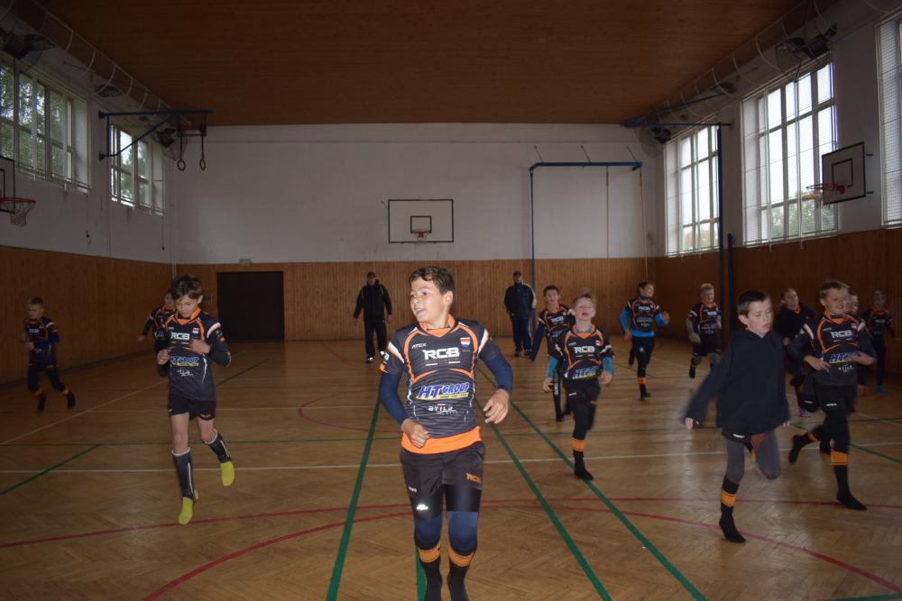 V areálu střední školy nám jako šatnu pro převlečení do dresů byla přidělena tělocvična, což jsme přivítali a rozcvičku provedli tamtéž, místo abychom běhali v dešti na hřišti, což jak je všem ragbistům známo - je typické ragbyové počasí ze zemí Spojeného Britského království a českomoravské vysočiny, ale nikoliv pro borce z Kalifornie České republiky – Jižní Moravy. Po rozcvičce v suchu tělocvičny jsme se přesunuli v dešti na hřiště, kde jsme nastoupili proti Dragonu, a snad díky modlitbám Čudla přestalo pršet.