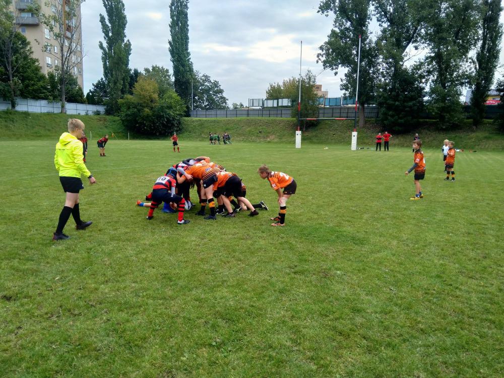 V sobotu 25. září jsme zjistili, že svět je zase v pořádku. Aspoň ten náš malý, bystrcký, ragbyový. Vrátil se nám náš milovaný patrák a jeho vládce J.H., tímto však skončila nám nic netušícím veškerá radost. Ano, radost jsme měli z usměvavých tváří našich dvaceti svěřenců, kteří ač museli vstávat za ranního kuropěni, neztratili nic ze svého nadšení.