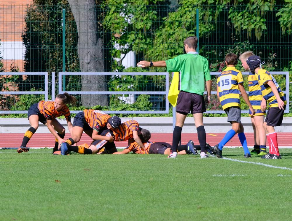 Pochvalu za utkání, které skončilo 33:5 pro domácí, zaslouží celý tým, ale vyzdvihnout musíme vazače Havise (nechal na hřišti vše), mlýnovku Elišku (hrála opět s přehledem a nasazením) a střídající křídla Matěje a Tádu, kteří jsou na ragby krátce, ale zahráli bez bázně.