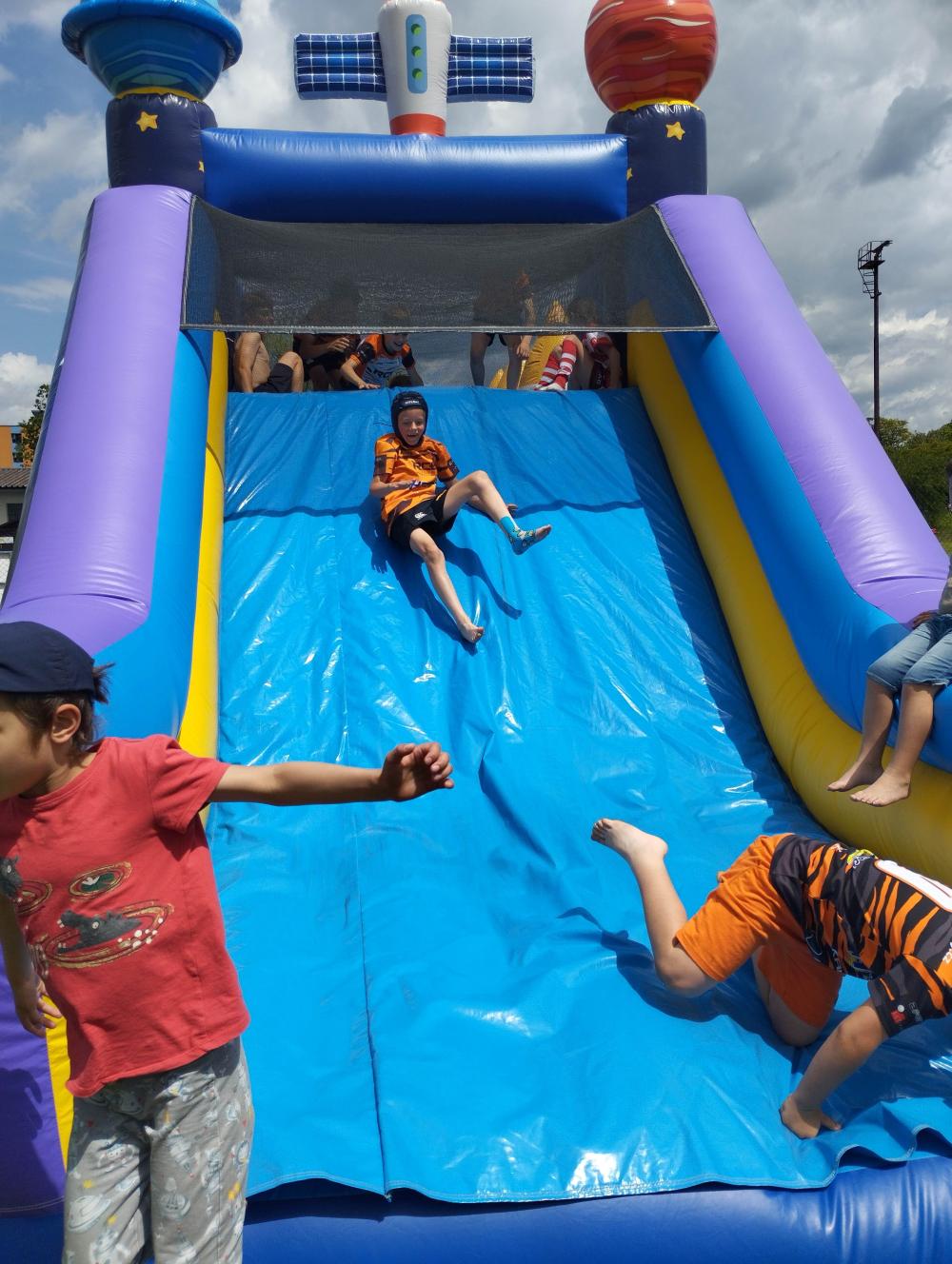 V mezidobí se děti bavily po svém, obzvláště zajímavý pak byl doslova O melouny boj, kdy vynalézaví (a prozíraví) rodiče dali své ratolesti zabalený meloun bez jakéhokoliv kráječe. A teď si dítko poraď! Poradili! Stejně tak ihned po skončení turnaje vlítli na tradiční nafukovací hrad, který po několikerém zásahu dospělých naštěstí přežil i řádění hordy brněnských dítek, z nichž sice většina nosí domů samé jedničky, ale s rodiči v nedohlednu se často mění ve smečku neandrtálců! A KFC samozřejmě nakonec taky proběhlo, takže mise byla řádně splněna. Při odjezdu jsme ještě se smutkem a otázkou "zda-li se ještě někdy uvidíme" v očích zamávali odvážlivcům z řad rodičů, kteří zůstali na místě a v rámci dobrovolného spolku invalidů Open sehráli zápas se stejně postiženými ze zbytku Moravy. Nakonec víceméně přežili všichni, sláva vítězům i přeraženým!
