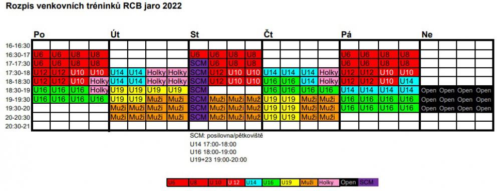 Po dlouhé zimě se konečně vracíme ke standardnímu fungování na hřišti RCB. To si společně připravíme na sobotní (26.3.) brigádě a od následujícího týdne (28.3.) bude platit tento rozpis tréninků.