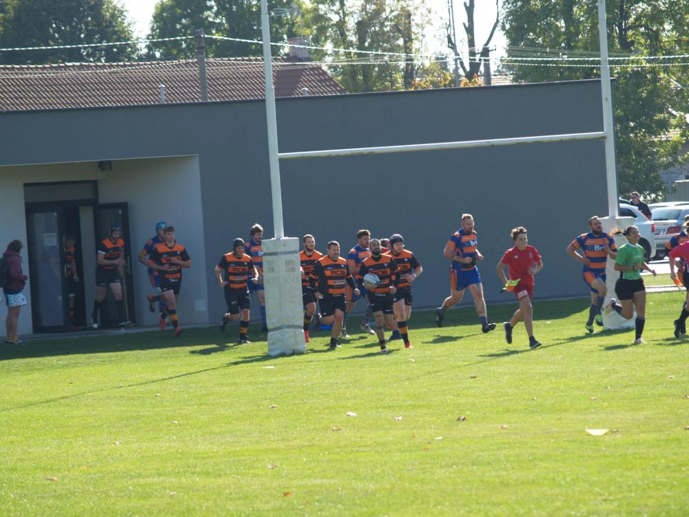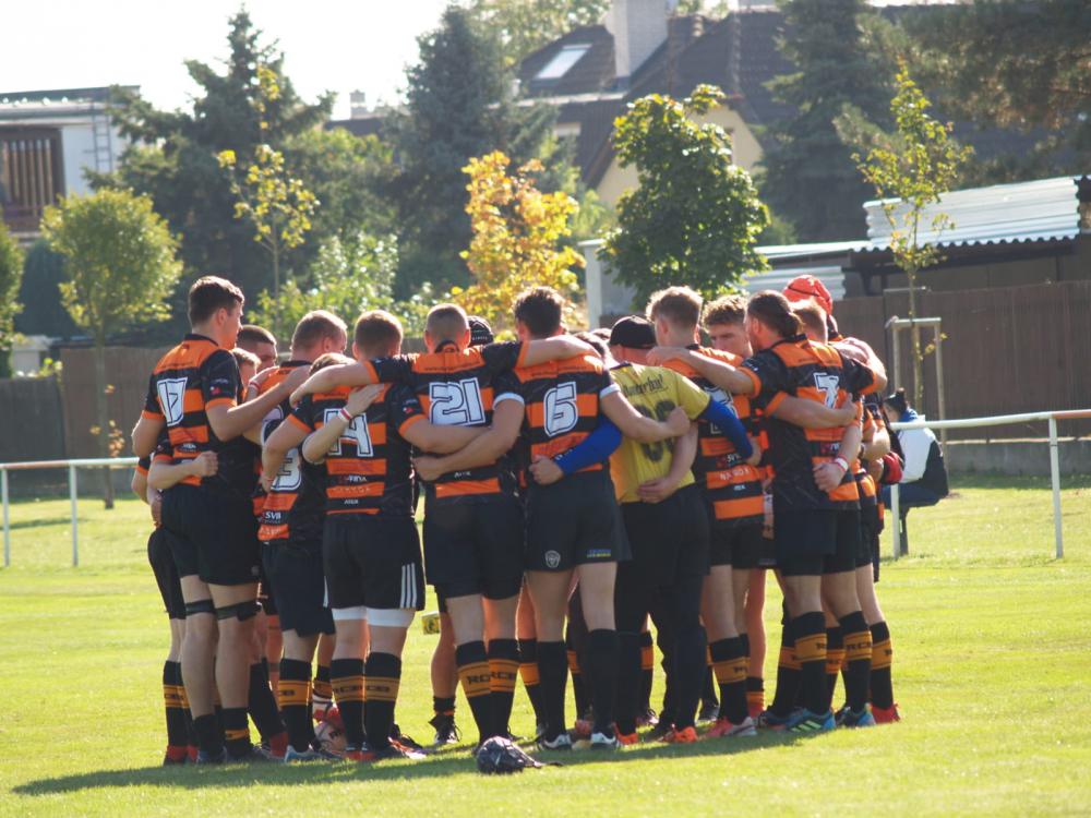 Na záps proti ARC Iuridica/RC Říčany jsme odcestovali se zvednutou hlavou i přesto, že soupeř byl posílen hráči z jednoho nejlepších týmů extraligy. Od začátku jsme hráli ve vysokém tempu a odměnou nám byla první pětka Karla Opravila už ve 4. minutě utkání. Dále jsme tvrdě bránili a tlačili se rojem, což nutilo soupeře k chybám. Jednu takovou využil v 13. minutě opět Karel Opravil, který protlačil míč až do brankoviště. Konverze byla úspěšná a skóre tak narostlo na 14:0 pro nás.