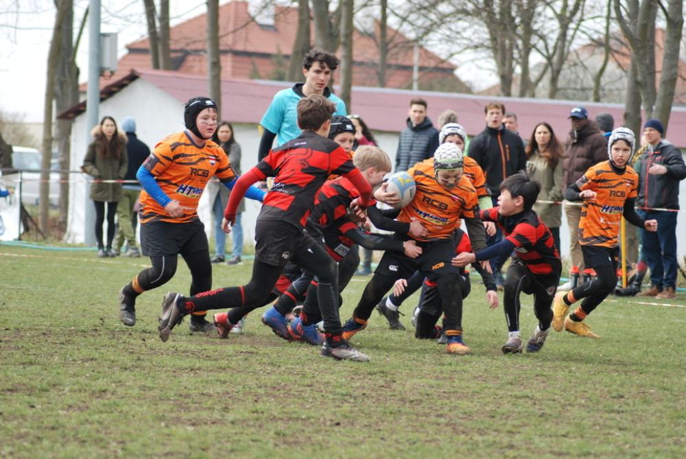 Úderem desáté hodiny se rozehrál největší mládežnický turnaj v rugby na našem území. Na pěti hřištích se střídali soupeři z celé republiky, navíc dorazily i týmy z Německa a Litvy. Náš tým Orange najel hned zkraje na vítěznou vlnu a postupně porazil Spartu, PEŘÍ (mix Petrovic a Říčan), Pragovku a v posledním dopoledním utkání změřil síly s velmi silným áčkem Frankfurtu. V Německu hrají trochu jiný systém a zápas dost bolel – náš lehkonohý styl jsme museli zkombinovat s buldočí silou, přesně dle slavného výroku: „Bůh mi dal talent, ale rojníci mi dali balón.“ Ale i tento zápas jsme zvládli a kvalifikovali se do semifinálové skupiny, tedy do bojů o 1.–10. místo.