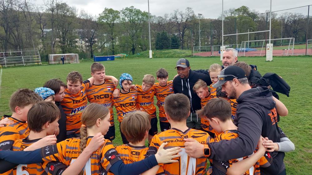 Do druhé půle jsme nasadili naše naděje, bratry Hanákovi z U12 a hra se hodně oživila. Kluci se nebojí skládat a umí i skvěle kopat. Dost jsme se po poločase zlepšili v obraně a konečně jsme začali hrát naši hru. Ke konci jsme dostávali soupeře pod tlak, který vyústil i několika žlutými kartami. Bohužel naše zvýšená aktivita přišla příliš pozdě, korigovali jsme už jen jednou pětkou s konverzí. Konečný výsledek 38:12 nás moc nepotěšil.