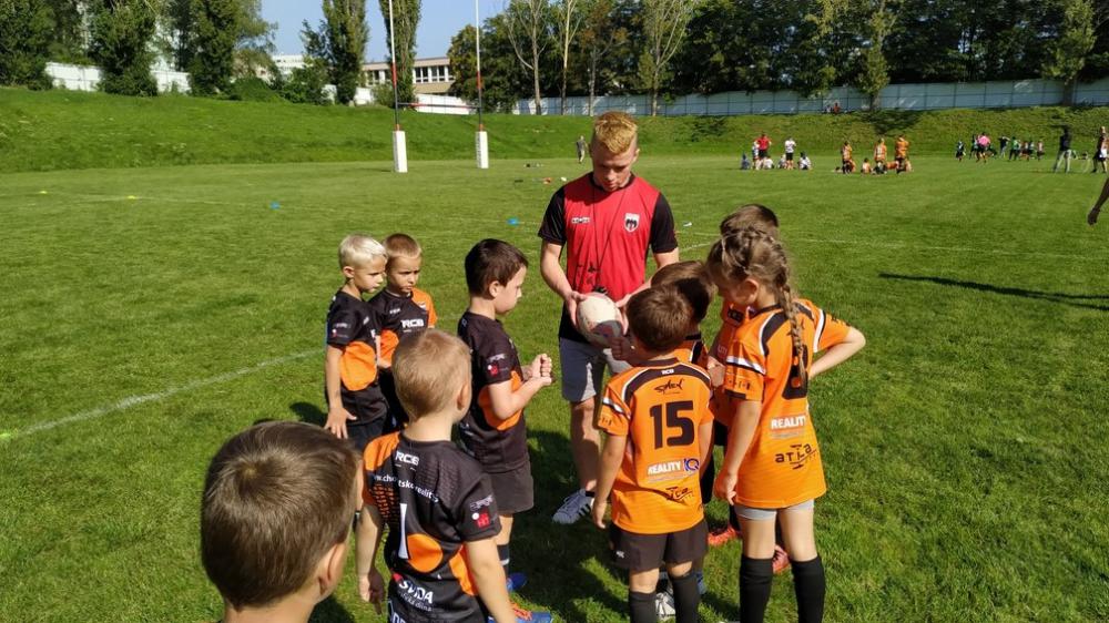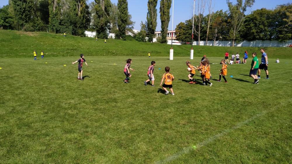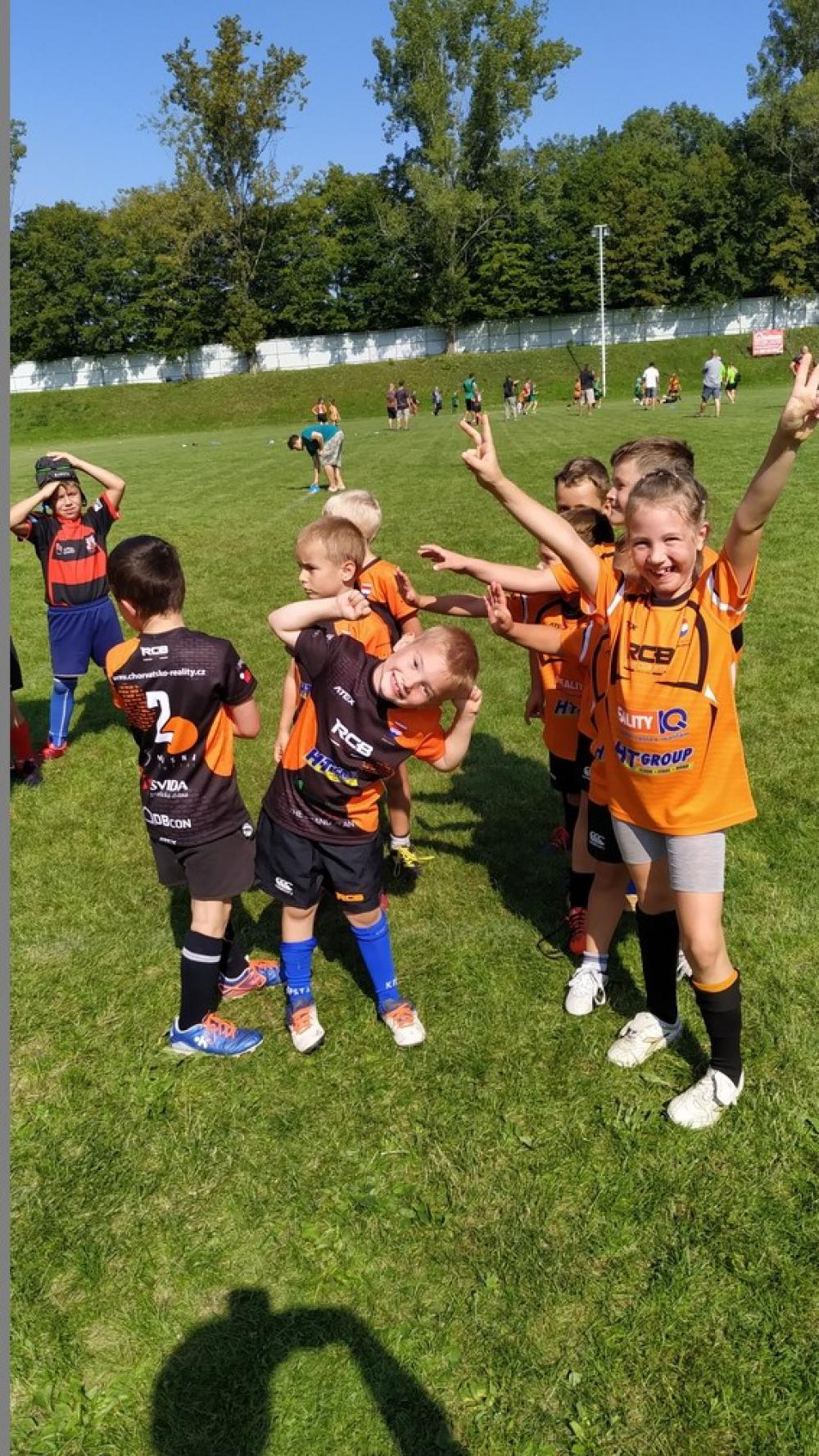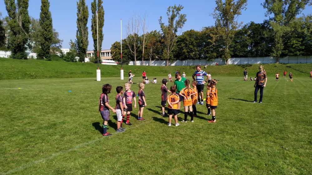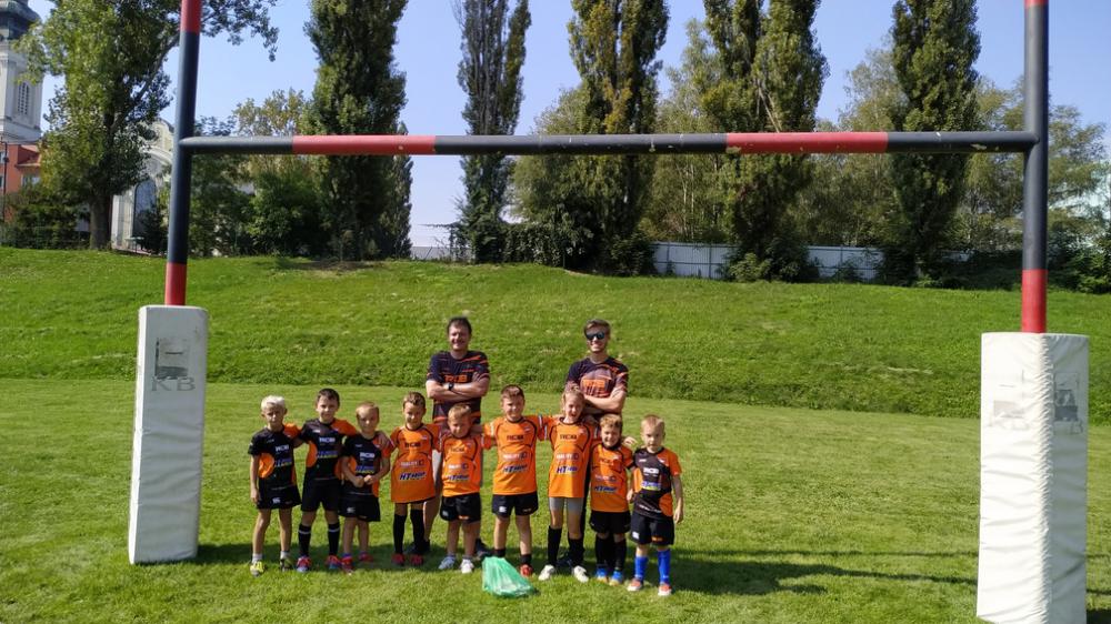 Do turnaje jsme tedy postavili dvě mužstva a výběr nováčků navíc pokřtil nové černo-oranžové dresy. Někteří hráči pojali tento křest zcela originálně, takže nebyla nouze o vlastní pětky, nebo předvádění běhání pejska uprostřed utkání, strýček Jedlička a jeho bratranec ze sedmého kolene, tajemný TK, by z nás měli radost. Na druhou stranu jsme byli svědky bojovného výkonu, mnoha skládek a první pětky Kuby. První body položil i Pepa, k čemuž oběma gratulujeme! To vše proběhlo za přísného dohledu bystrcké rugbyové legendy, zlotřilého iuristy dr. Manna a také našeho starého známého Benkyho, který se svou stále rudnoucí kůži snaží zamaskovat rašícím plnovousem. Doufejme, že nedopadne jako Tóma hluchoněmec. Mezery ve znalostech nových pravidel se nezřídka snažili úsměvem zamaskovat i místní arbitři, takže se nám z rugby pomalu stala házená (vše dopředu!) a jen doufáme, že neskončíme u amerického fotbalu. Nicméně za úsměv díky!